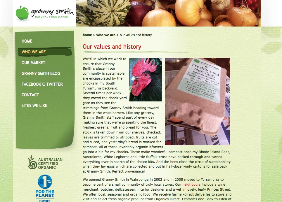 I was very proud to establish and manage a certified organic grocery store called Granny Smith Natural Food Market. It operated in Sydney’s northern suburbs from 2002 to 2012 when I sold it to move to North East Victoria.